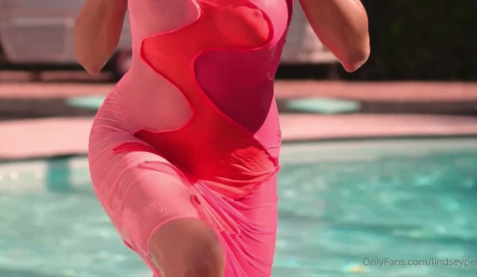 Lindsey Pelas poolside sheer nude dress