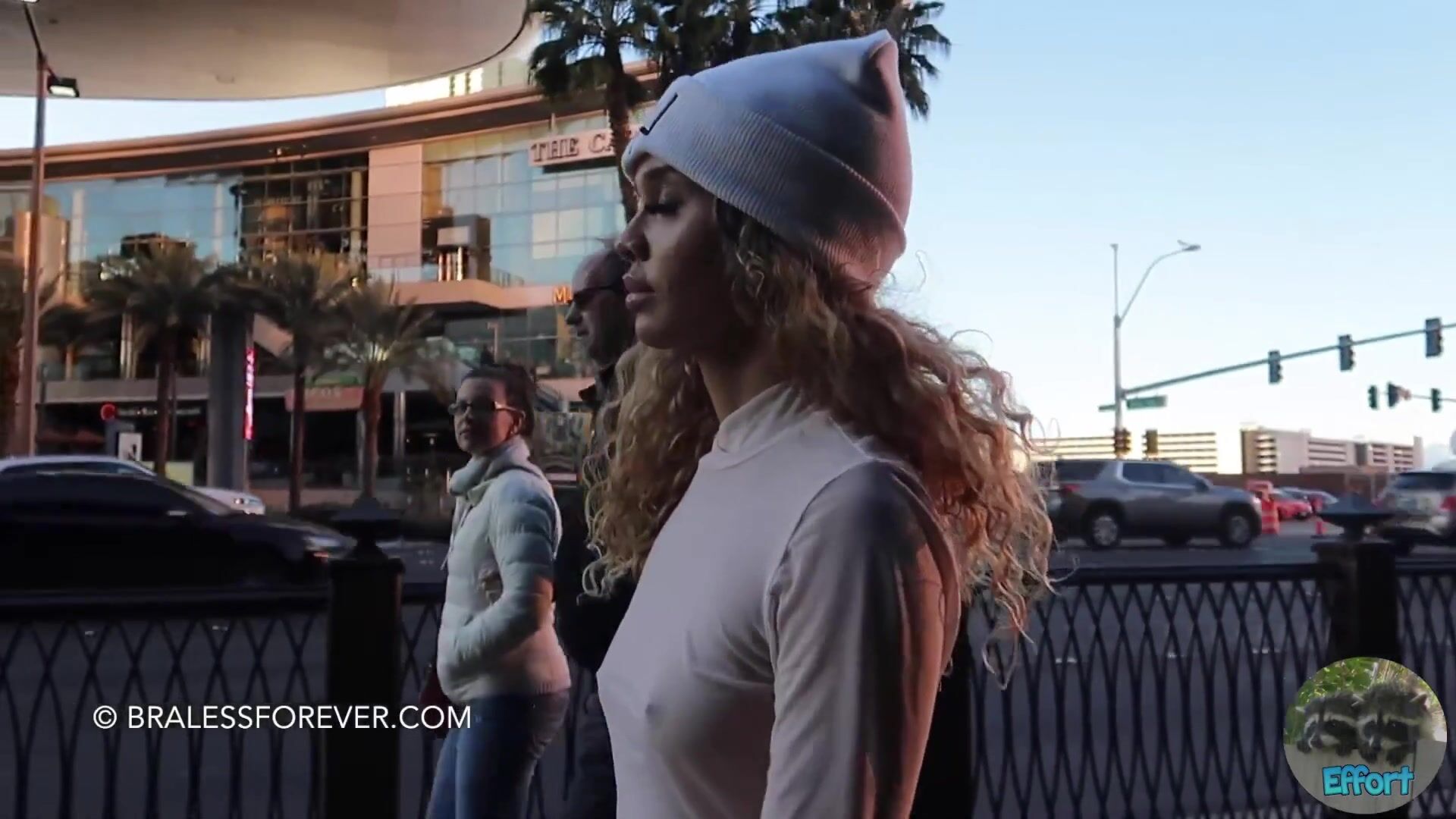 braless walking