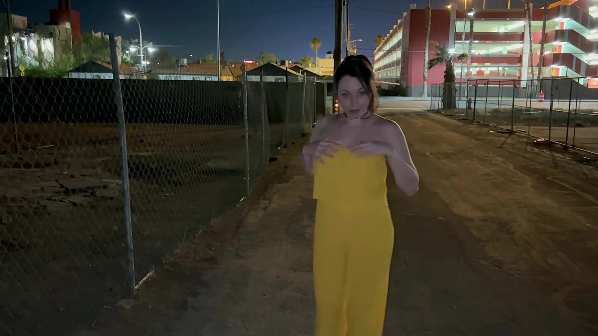 Nicole Niagara Risky attention whore takes off her yellow dress and cums in public