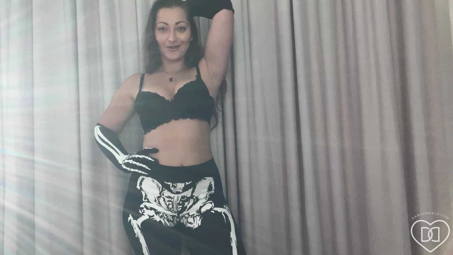 Emi in Halloween pants shows her boobs