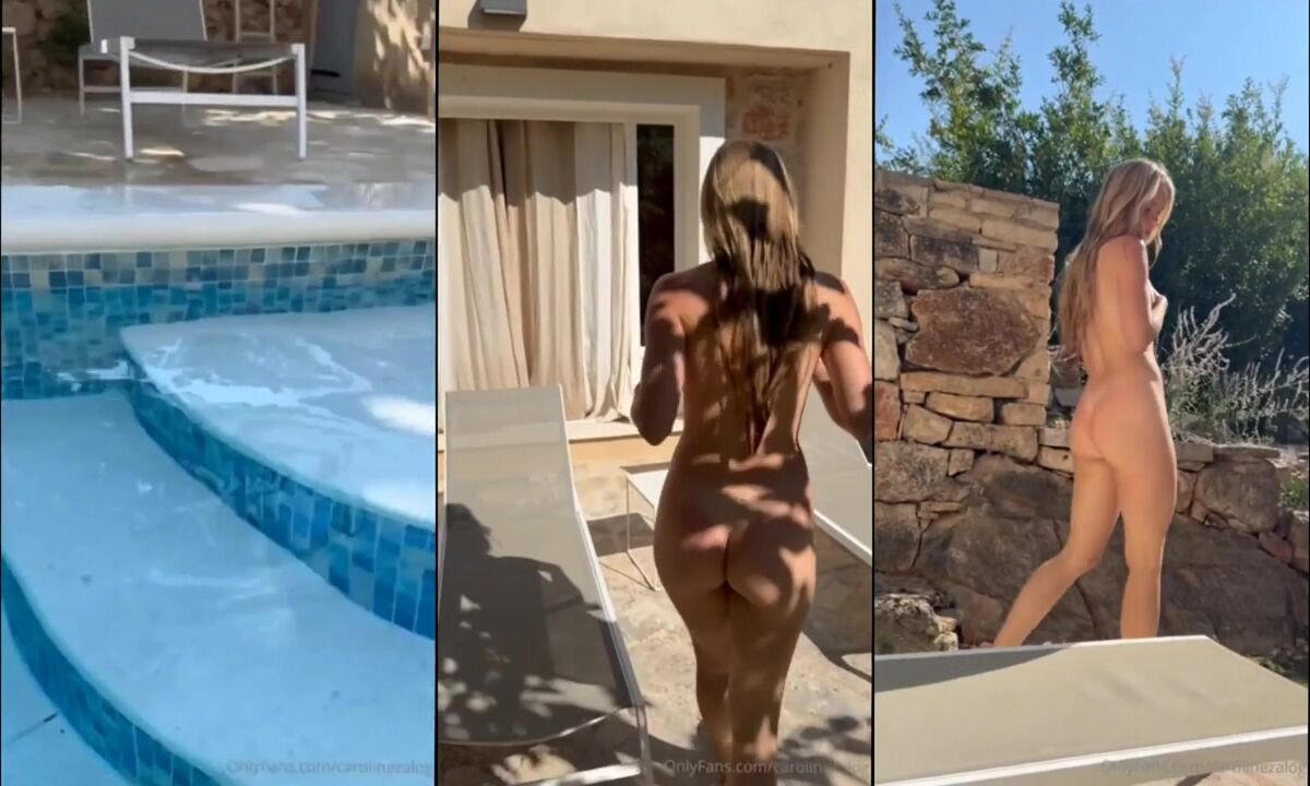 Caroline Zalog - Tanned Blonde Sunbathes in Her Backyard