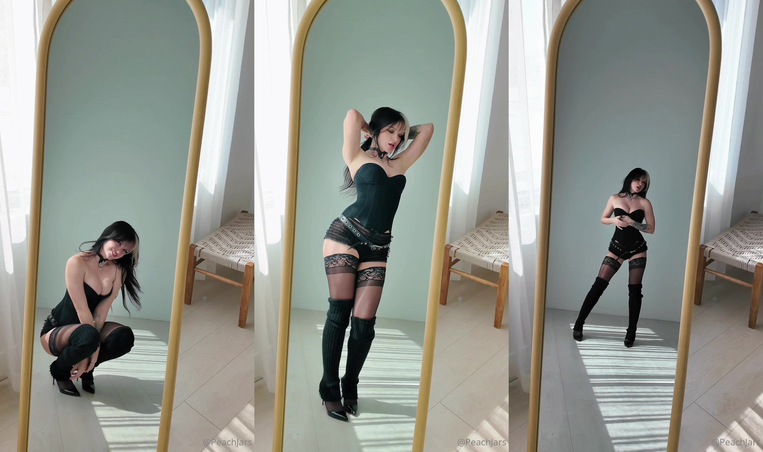 PeachJars poses in front of a mirror