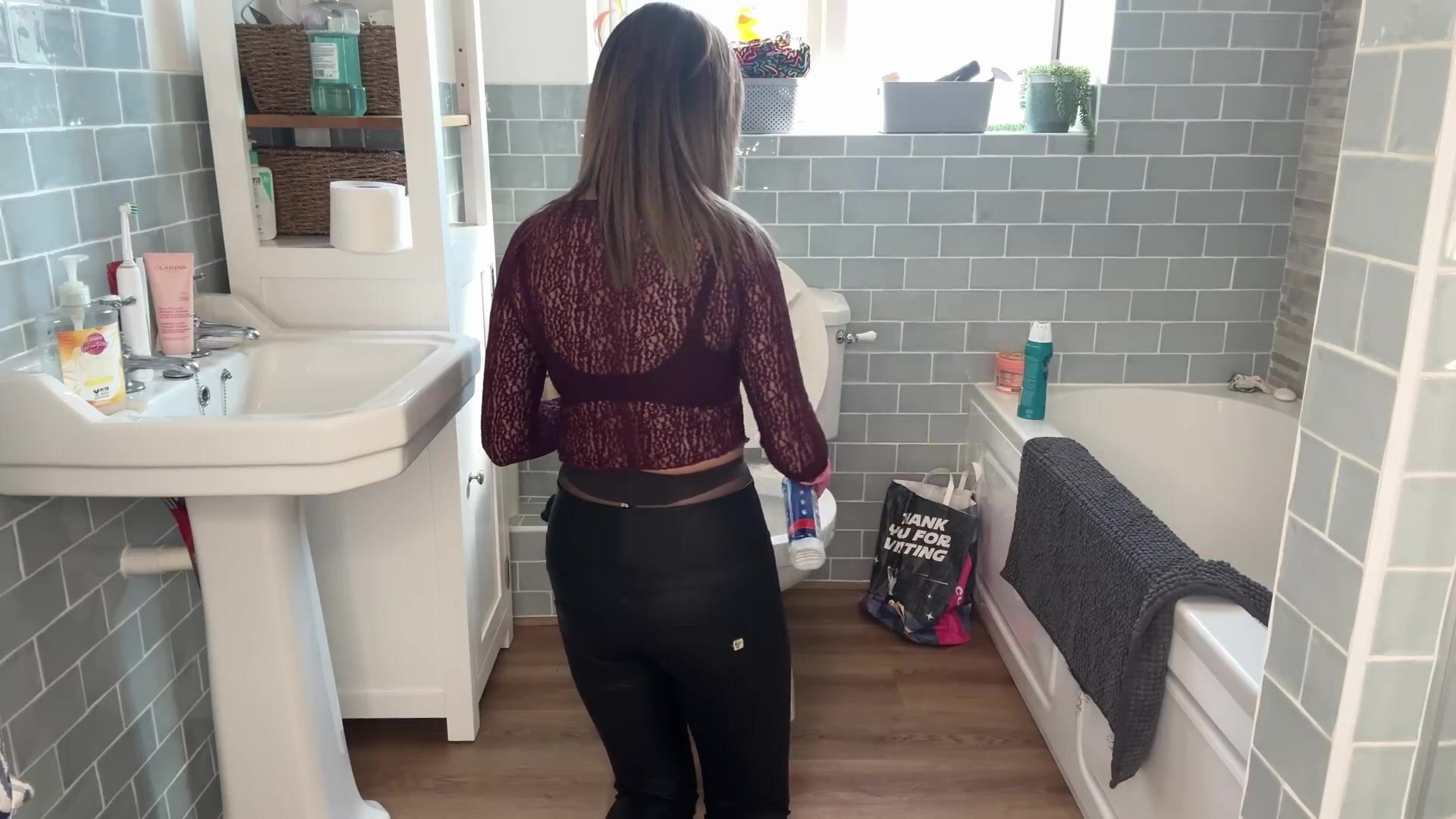 Hannah Cleans The Bathroom