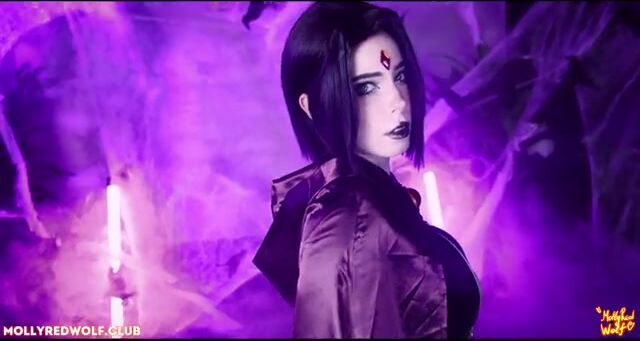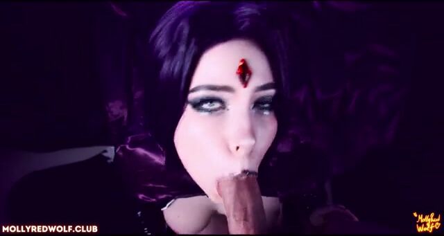 Mollyredwolf teen titans raven gets cumshot from pussy to mouth