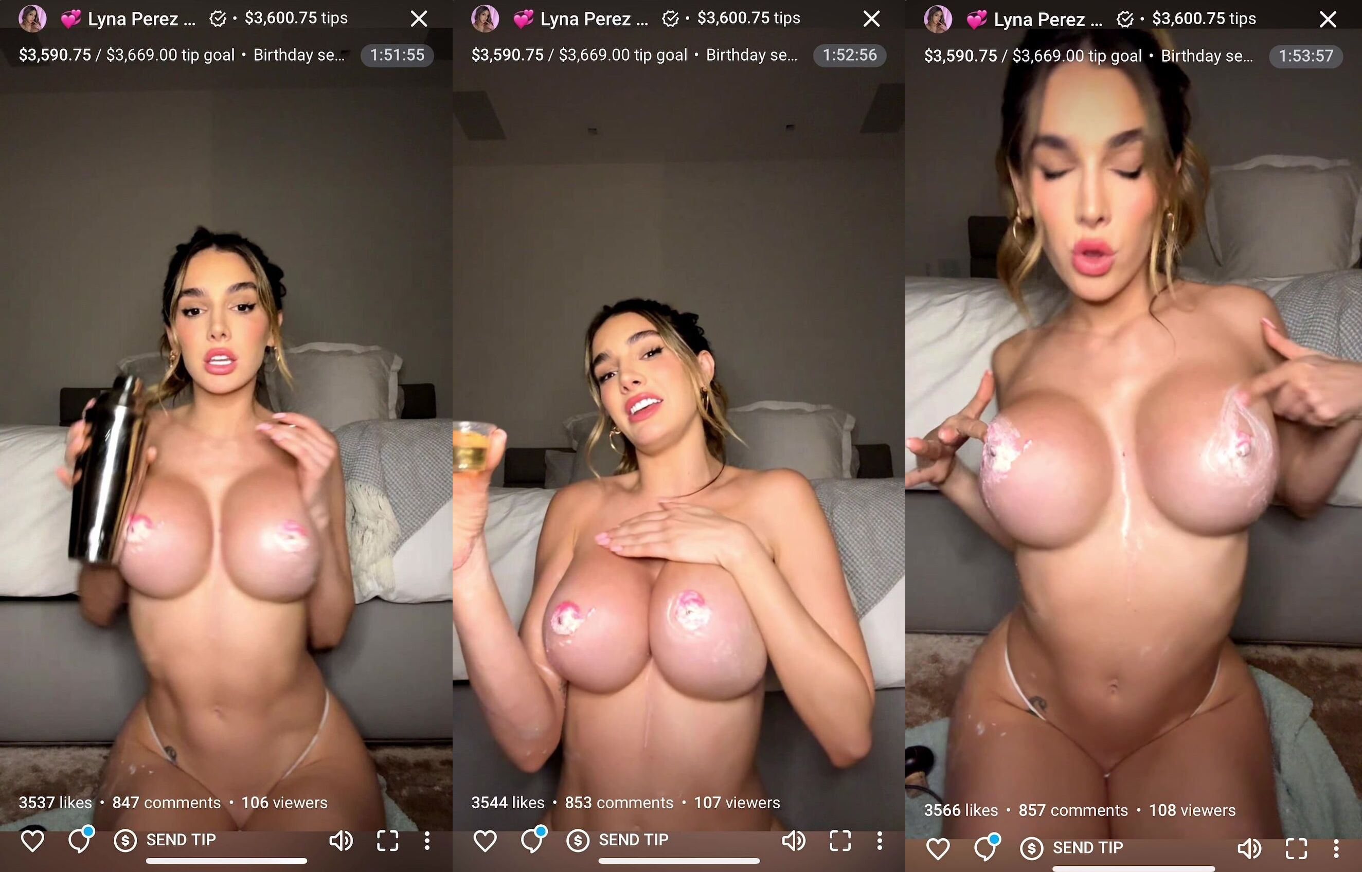 Lyna Perez Bday LIVE-Stripping off naked shower scene