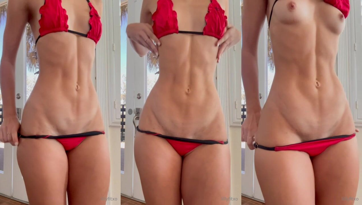 Red bikini lily so hot abs ass