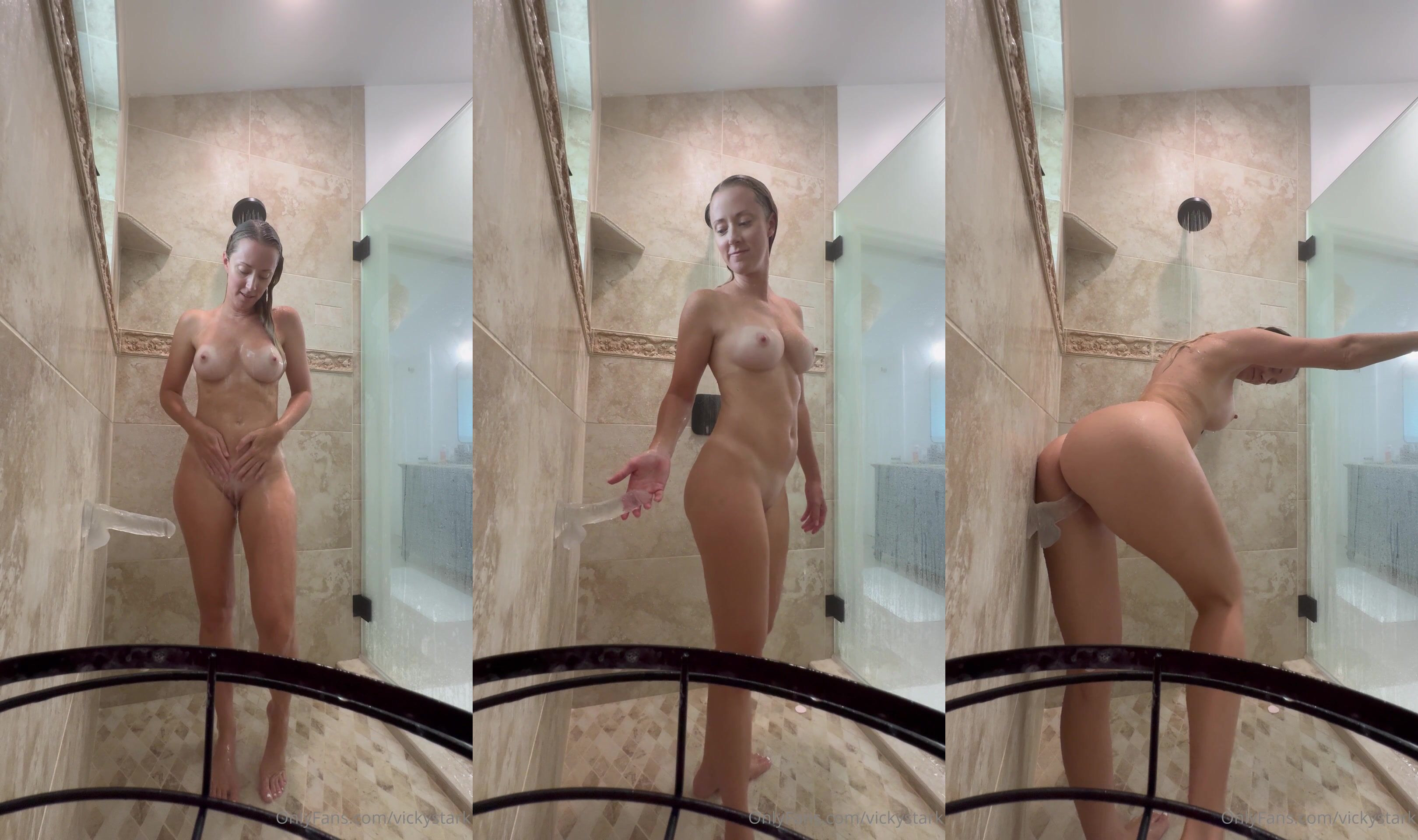 Vicky Stark shower dildo against wall