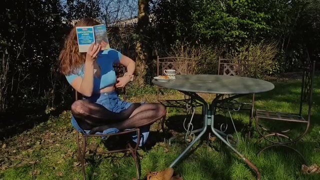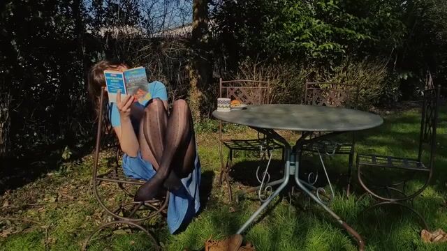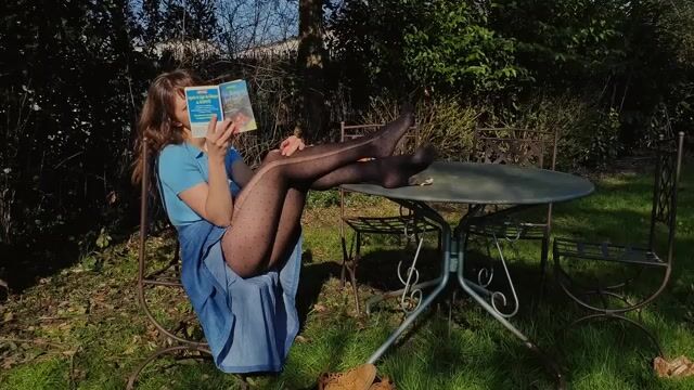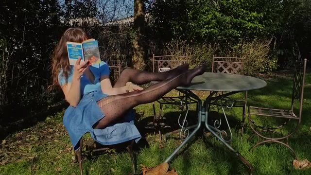 Reading Outdoors In Pantyhose