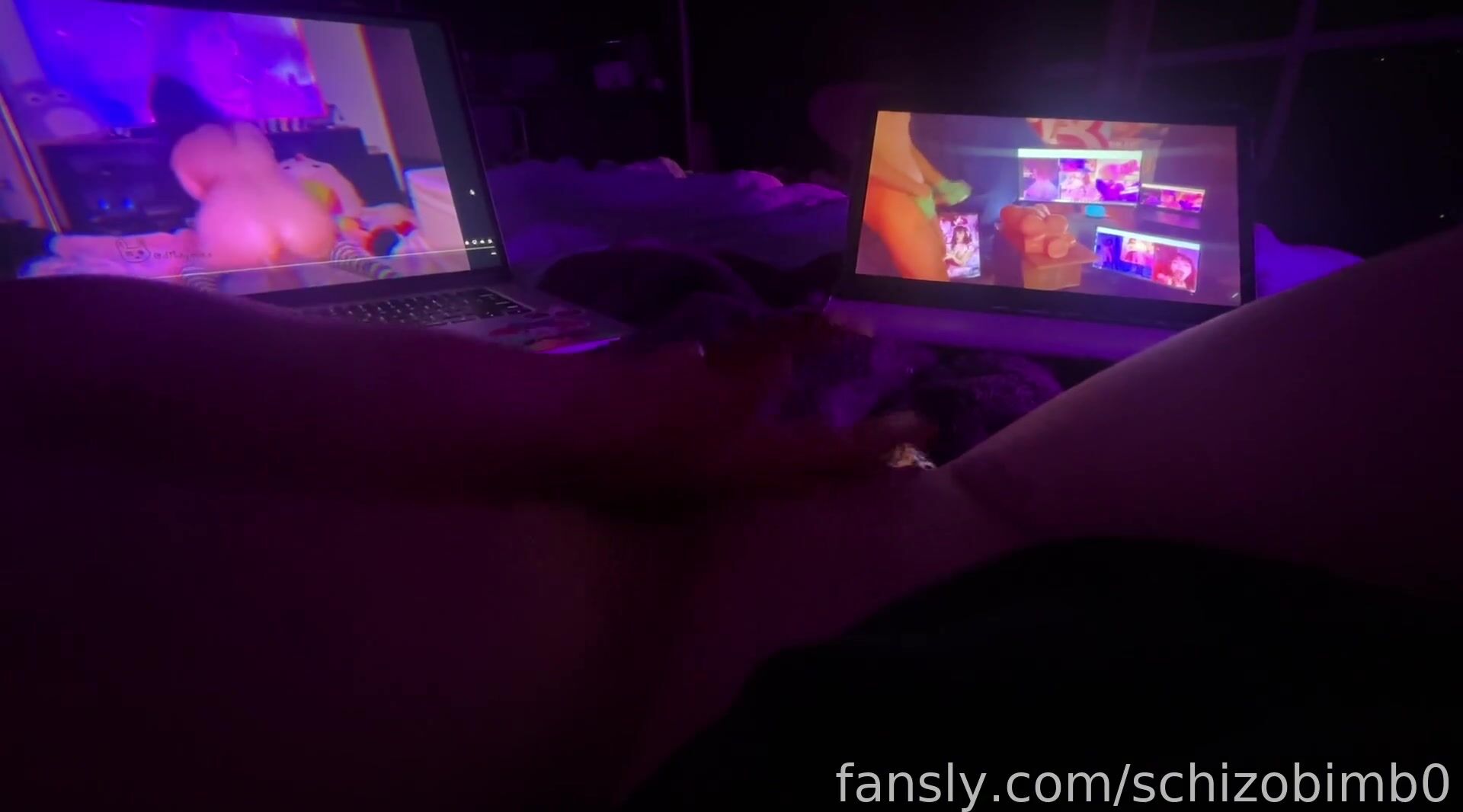Schizo bimbo squirting on laptop