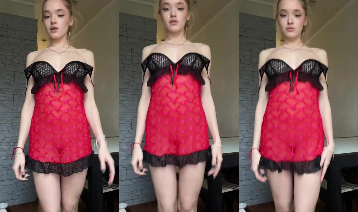 red sheer dress